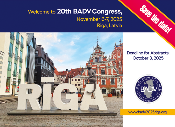The 20th Baltic Association of Dermatovenerologists (BADV) Congress will take place in Riga – a jubilee event reflecting on 35 years since the first international dermatology congress in Latvia in 1990.