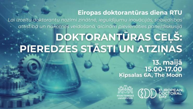 Riga Technical University (RTU) Doctoral School invites PhD students, Master’s students, academic staff and all interested participants to an event on 13 May, European Doctoral Day, from 15:00 to 17:00 — an afternoon meetup where attendees will hear inspiring experience stories and learn how doctoral studies can become a solid springboard for careers in both science and industry.