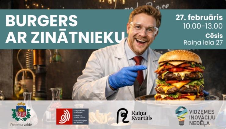 On February 27, in Cēsis, from 10:00 to 13:00, as part of Vidzeme Innovation Week, the Patent Office will host an in-person event “Burger with a Scientist.”