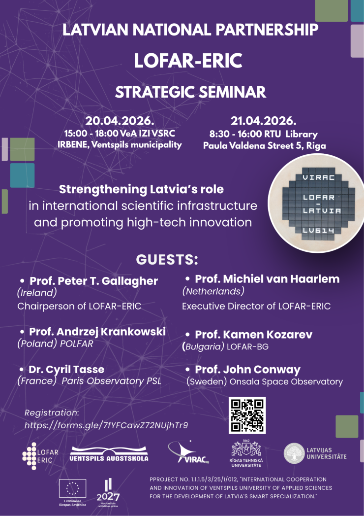 On April 20 and 21, Latvia will host a significant international scientific and academic event - the strategic seminar “Latvia’s National Partnership within LOFAR ERIC,” which will bring together leading radio astronomy experts from Europe.