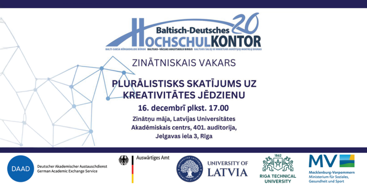 On December 16, 2025, at 17:00, everyone is invited to the scientific evening “A Pluralistic Perspective on the Concept of Creativity”, which will take place at the University of Latvia Academic Centre, House of Sciences, Auditorium 401.