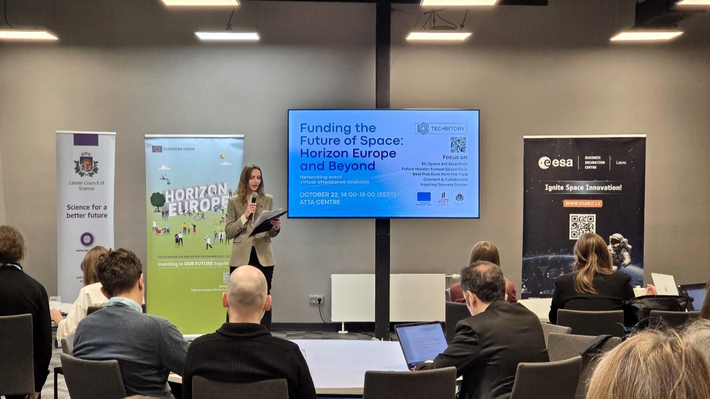 LZP pārstāve Ingrīda Lavrinoviča iepazīstināja ar “Apvārsnis Eiropa” 4. klastera kosmosa tematikas darba programmu 2026. gadam, aicinot pētniekus un uzņēmumus būt aktīviem projektu pieteikumu iesniedzējiem. RTU tenūrprofesors Andris Slavinskis dalījās pieredzē par satelītu izstrādes un palaišanas projektiem ESTCube-1 un ESTCube-2, savukārt Ļevs Lapkis, “ESA BIC Latvia” vadītājs, aicināja jaunuzņēmumus izmantot Eiropas Kosmosa aģentūras inkubācijas centra iespējas.