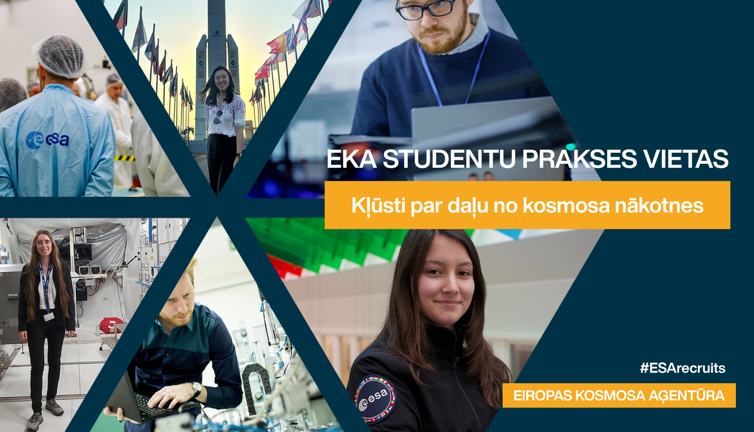 Eiropas Kosmosa aģentūra (EKA) aicina studentus pieteikties 2026. gada studentu prakses programmai. Tai pieteikties iespējams arī Latvijas studentiem, kuri studē inženierzinātnes, dabaszinātnes, IT, uzņēmējdarbību, ekonomiku vai sociālās zinātnes! Iepazīsties ar vairāk kā 200 piedāvātājām prakses iespējām un piesakies līdz 30. novembrim!