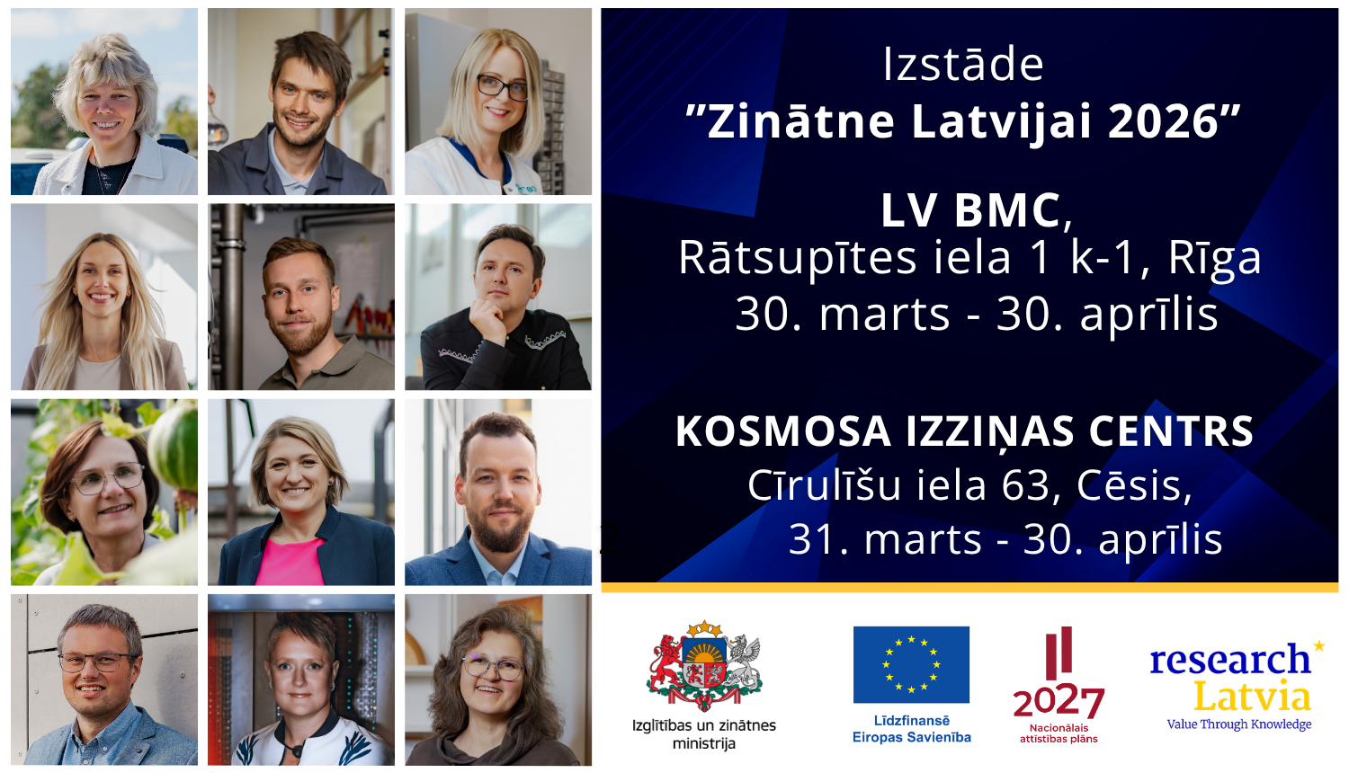 Izglītības un zinātnes ministrijas veidotā ceļojošā izstāde "Zinātne Latvijai 2026" sniedz unikālu iespēju iepazīt 12 Latvijas zinātnes izcilības un viņu ieguldījumu sabiedrības un pētniecības attīstībā. Aprīlī ceļojošā izstāde un zinātnes kalendārs izceļ Latvijas Biomedicīnas pētījumu un studiju centra (LV BMC) (Latvijas Nacionālais pētniecības un inovācijas institūts) darbu un pētnieku ieguldījumu, akcentējot institūta nozīmi Latvijas pētniecības telpā. No 30. martam līdz 30. aprīlim izstāde būs skatāma LV BMC, Rātsupītes 1 k-1, Rīgā un sākot no 31. marta līdz 30. aprīlim izstāde atradīsies Kosmosa izziņas centrā, Cīrulīšu ielā 63, Cēsīs. Izstāde ir bezmaksas un var aplūkot visi interesenti.