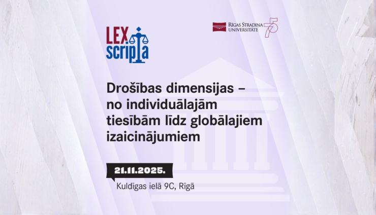 21. novembrī Rīgas Stradiņa universitātes (RSU) Sociālo zinātņu fakultātē (Kuldīgas iela 9C, Rīgā) norisināsies ikgadējā zinātniski praktiskā tiesību zinātņu konference Lex Scripta, kas šogad veltīta tematikai Drošības dimensijas – no individuālajām tiesībām līdz globālajiem izaicinājumiem.