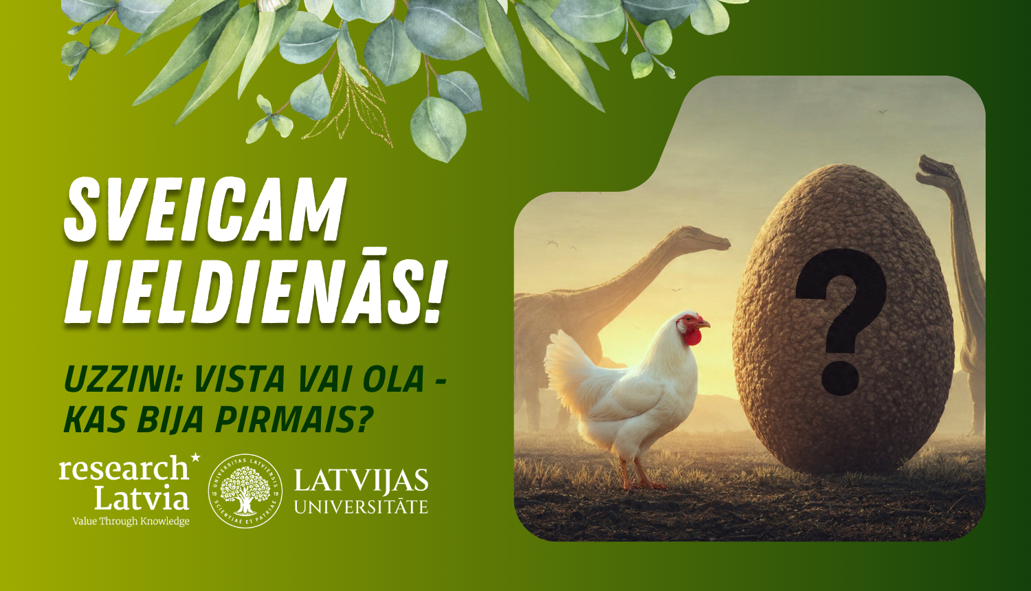 Gatavojoties Lieldienām, tradīciju balstīti, liela daļa Latvijas iedzīvotāji un Lieldienu tradīcijas piekritēji jau no ziemas glabā sīpolu mizas, krāj saplēstās zeķbikses, veikalā vai saimniecībās meklē baltās olas un nereti tiek aktualizēti eksistenciāli dabas jautājumi. Zinātnes komunikācijas platforma šogad aicina apskatīt vistas evolūciju un sabiedrības izsenis neatbildēto jautājumu, vai pirmā bija vista, vai arī tomēr ola. Iedvesmojoties no paleontologa Xing Xu pētījuma, lūdzām pētnieku no Latvijas Universitātes Eksakto zinātņu un tehnoloģiju fakultātes (LU EZTF) profesoru Ervīnu Lukševiču skaidrot šo jautājumu.