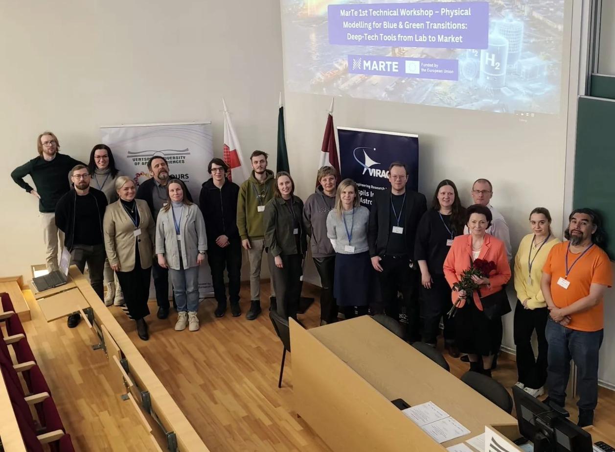 Jūras vēja enerģija, zaļā ūdeņraža ražošana, ilgtspējīgs jūras transports, viedā ostu infrastruktūra un jūras biotehnoloģijas arvien biežāk tiek atzītas par galvenajiem ilgtspējīgas zilās ekonomikas pīlāriem Baltijas jūras reģionā, veidojot tā ilgtermiņa vides noturību, enerģētisko neatkarību un ekonomisko transformāciju. Projekta Marine Technology Excellence Hub for Sustainable Blue Economy in the Baltics (MarTe) pirmajā tehniskajā darbnīcā, kas notika Ventspils Augstskolā (VeA), pētnieki demonstrēja, ka šādu ambīciju īstenošana balstās uz progresīviem fizikālās modelēšanas un simulācijas rīkiem, kas savieno pētniecību ar rūpniecisko ieviešanu.
