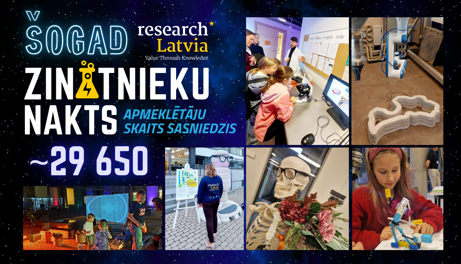 Septembra pēdējā piektdienā visā Latvijā norisinājās Eiropas Zinātnieku nakts 2025, kas ar simtiem aizraujošu aktivitāšu pulcēja ap 29 650 dalībnieku. Eksperimenti, radošās darbnīcas un pastaigas ar pētniekiem parādīja zinātni kā sabiedrībai nozīmīgu resursu un vērtību. Šī ikgadējā iniciatīva sniedza iespēju ģimenēm, skolēnu grupām, studējošajiem un ikvienam interesentam iepazīt, kā pētniecība sniedz praktiskus ieguvumus un ietekmē mūsu ikdienu, vienlaikus iedvesmojot domāt par esošajām un nākotnes iespējām.